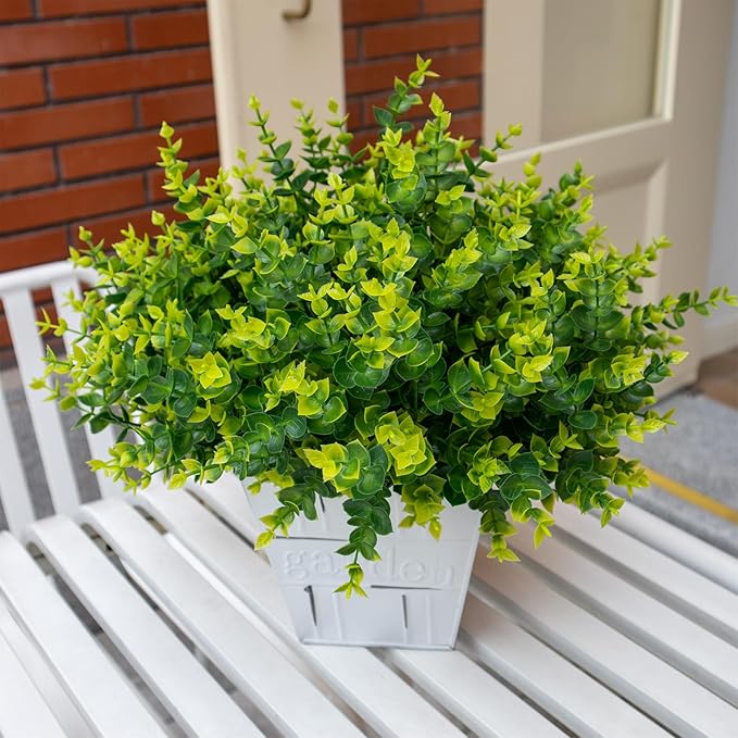 Artificial Flowers for Outdoors, 12 Bundles UV Resistant Realistic Fake Flowers for Outside Porch Patio Planter, Not-Fading Plastic Fake Plants for Home Garden Porch Decoration,Green